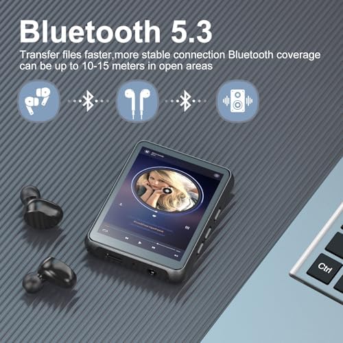 64GB MP3 Player Bluetooth 5.3 Touch Screen Music Player Portable mp4 Player with Speakers high Fidelity Lossless Sound Quality 2.4 inch mp3 FM Radio Recording e-Book