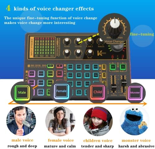 K300 Sound Effects Board Set, LED Light Voice Changer Sound Card with Multiple Sound Effects - Podcast Equipment Bundle for Live Streaming\/Laptop Computer Vlog\/Living Broadcast YouTube or TikTok
