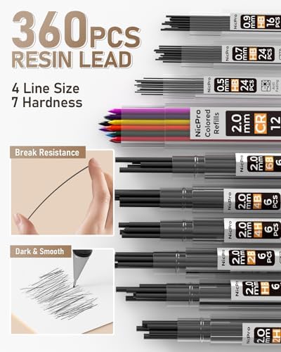 Nicpro 35PCS Art Mechanical Pencil Set, 3 PCS Metal Drafting Pencil 0.5 mm & 0.7 mm & 0.9 mm & 3 PCS 2mm Lead Holder (6B 4B 2B HB 2H 4H Colors) For Sketching Drawing With 20 Tube Lead Refi