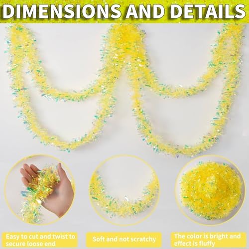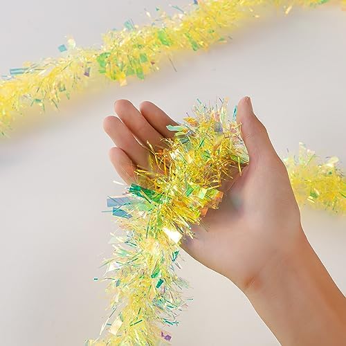 26.2 Ft Tinsel Garland Decoration for Holiday Tree Walll Home Office Event, Christmas, Birthday, Halloween, Party Decorations, Fluffy Twist for All-Season Indoor Outdoor Events - Yellow