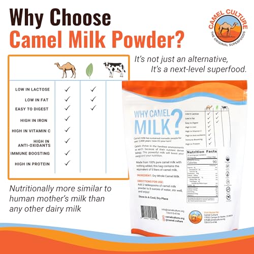 Camel Culture Dry Camel Milk Powder(400g) \u2013 Nutrient Dense, Low Lactose Powdered Milk Packets \u2013 Concentrated, Pasteurized Traditional Dairy Alternative - Health Drink Powder for Recipes, Smo