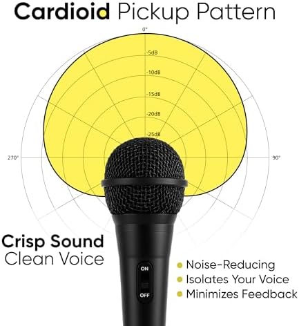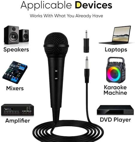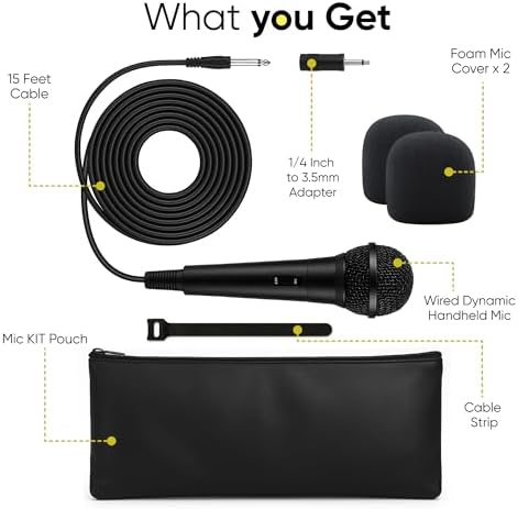 Bowens Wired Dynamic Microphone - Vocal Mic with 15ft Cable and 1\/4-Inch to 3.5mm Adapter, Cardioid Karaoke Microphone for Singing, DJ, PA System, Podcasting, Public Speaking Microfono