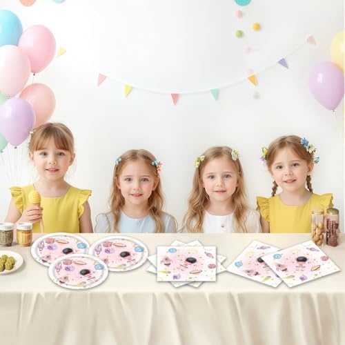 ACIYHN 40Pcs Outer Space Birthday Decorations Pink Moon Star Galaxy Planet Tableware Set Disposable Plates Napkins Serves 20 Baby Shower Two The Moon Birthday Girl Party Decorations