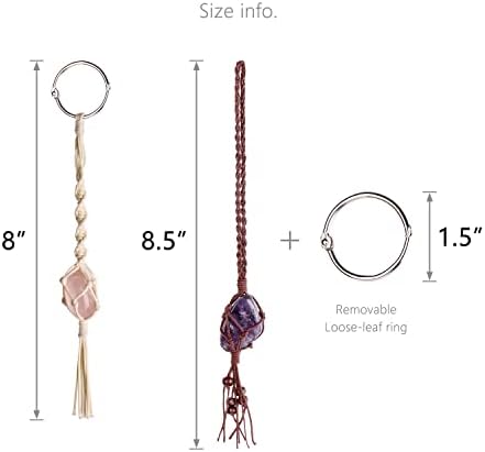 Dahey Macrame Crystal Car Charms Handmade Crystal Rear View Mirrior Car Ornament Boho Hanging Crystal, Waxed Rope Wrapped Crystal Hanging for Car Home Decor,Set of 2 Color