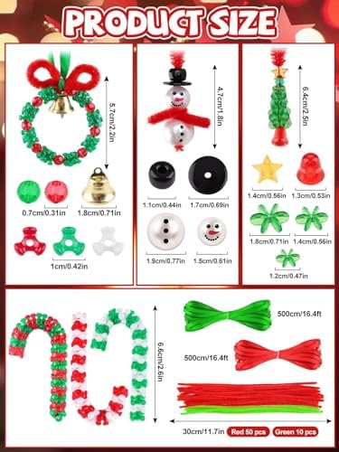 Lanstics 60 Sets Christmas Craft Beaded Ornament Kit Including 18PCS Wreath\/18PCS Candy Cane\/12PCS Snowmen\/12PCS Christmas Tree for Xmas Craft Tree Decorations Adults Holiday Party (Assembly Needed