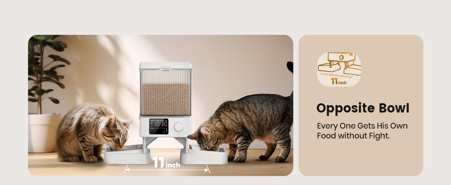 oneisall Automatic Cat Feeder for 2 Cats, 20 Cups\/5L Automatic Cat Food Dispenser for Small Pets Indoor, Timed Cat Feeder for Dry Food(White)