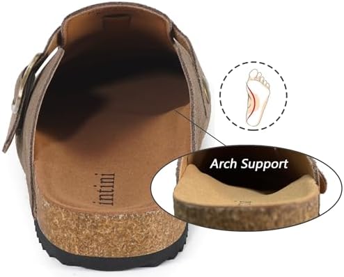 Intini Womens Suede Clogs Mens Leather Mules Cork Footbed Sandals with Arch Support