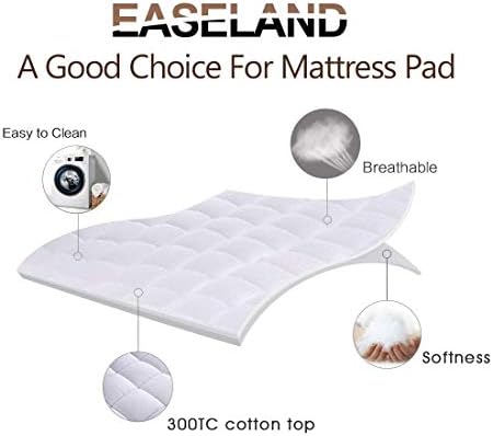 EASELAND Queen Size Mattress Pad Pillow Top Mattress Cover Quilted Fitted Mattress Protector Cotton Top Stretches up 8-21" Deep Pocket Cooling Mattress Topper (60x80 inch, White)