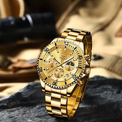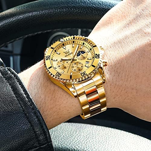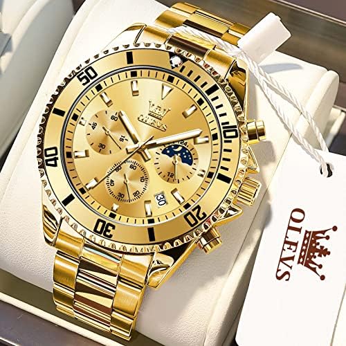 OLEVS Men Watch,Big Dial Watches for Men Stainless Steel Watch with Day Waterproof Analog Quartz Watches for Man Classic Business Wristwatch Luxury Luminous Round for Men Rotatable Bezel Watch