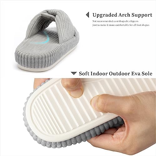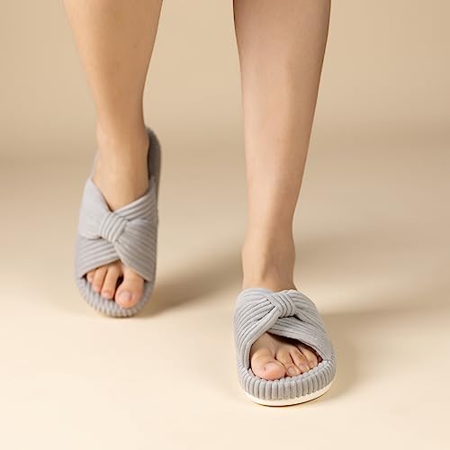 【Sizing Guide】These slippers are elegantly shaped to adorn the line of your feet. Please measure your foot length before purchasing. US 5-6(foot length:9.45"/24cm); US 7-8(foot length:9.84"/25cm); US 9-10(foot length:10.24"/26cm); US 11-12(foot length:10.63"/27cm). If you are 6.5/8.5/10.5, or if you have narrow feet or low insteps, please choose slippers one size down. 【Chantomoo Original Appearance Patented Slippers】The corduroy fabric of these slippers is fine and soft, skin friendly, warm, and non-slip underfoot. Corduroy fabric is combined with bowknot elements to make cross band slippers. The design is unique, classic and simple, with retro and elegant temperament, bright and stylish colors, suitable for all ages and all clothes. The memory foam slippers relax the feet, the platform is supported and not collapsed, and the EVA sole is wear-resistant and non-slip. At the same time, these materials make it very light, like walking on the cloud. These slippers are suitable for all scenes, indoor, bedroom, shopping, walking, party, travel, wedding, etc. Packaged in a unique and adorable shoebox, it makes the perfect slipper gift. Open toe slippers are breathable, lightweight, quiet, suitable for all seasons, perfect house slippers. ★Easy care, machine wash or hand wash, air dry, do not bleach.