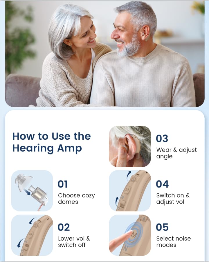 Hearing Amplifiers for Seniors with Noise Cancelling and Volume Control, Rechargeable Hearing Aids for Hearing Loss with Charging Case