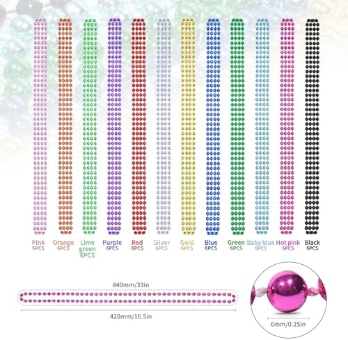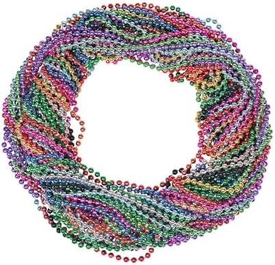 Partywonder Mardi Gras Beads Bulk Necklaces 33" Metallic Beads in 12 Assorted Colors For Festivals Parades Events Parties Favor Goody Bag Stuffers