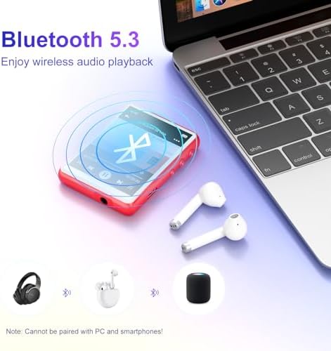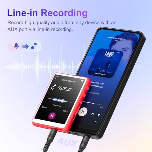 MECHEN 64GB MP3 Player Bluetooth 5.3 with 2.4" Full Touch Screen,Portable Digital Music Player with Speaker,FM Radio, Line Recording, HiFi Lossless Sound, Support up to 128GB. (Red)