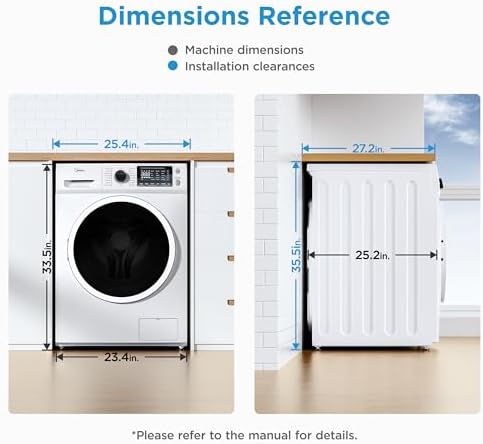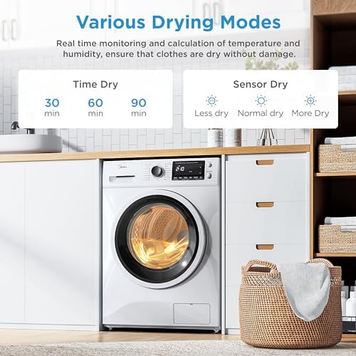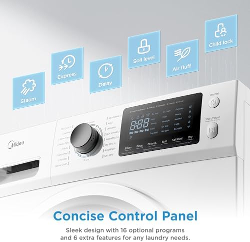 Midea 24 Inch Washer and Dryer Combo, All in One Washer and Dryer 2.7 cu.ft 26lbs, Ventless Washing Machine, Steam Care, Overnight Dry, 1400 RPM, 16 Cycles Front Load Washer, Full-Automatic, White