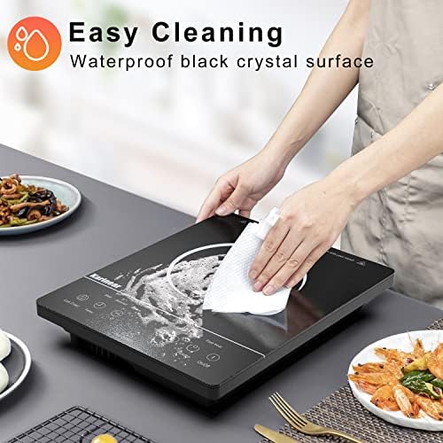 Karinear Portable Electric Cooktop, Electric Stove Single Burner Ceramic Cooktop with Touch Control, Child Safety Lock, Timer, Residual Heat Indicator, Overheat Protection, 1800W 110V Infrared Burner