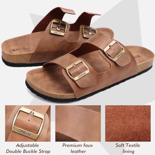 ONCAI Mens Sandals,Beach Slides Cork Footbed Slippers with Adjustable Buckle Straps Size 7-13