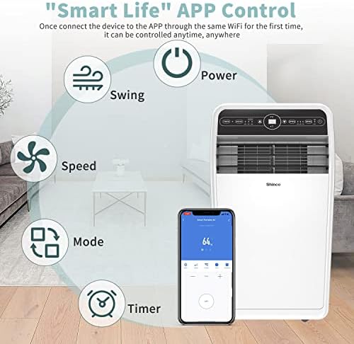 Shinco 12,000 BTU Portable Air Conditioner with WiFi, Portable AC Unit with Built-in Cool, 3-in-1 Cooling Fan & Dehumidifier for Rooms up to 400 Sq.Ft, Remote, 24H Timer, Installation Kits