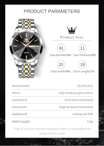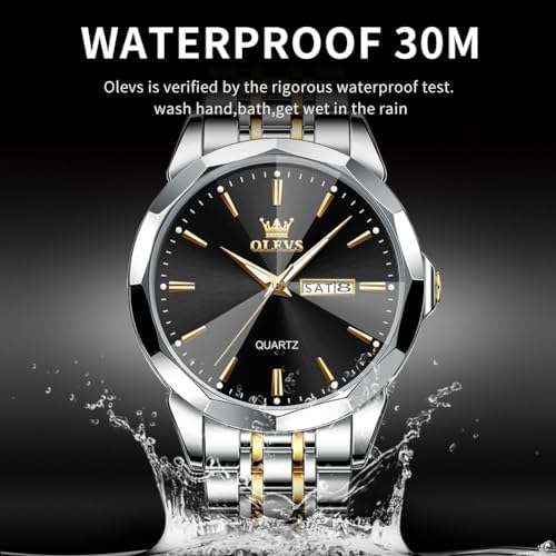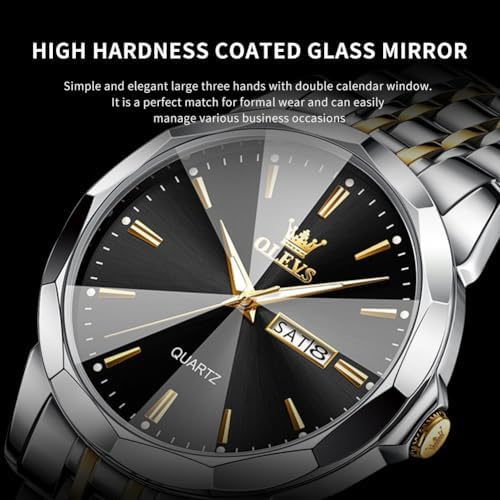 OLEVS Men Watches Business Dress Diamond Analog Quartz Date Luxury Wrist Watch Casual Stainless Steel Waterproof Luminous Two Tone Watch for Men