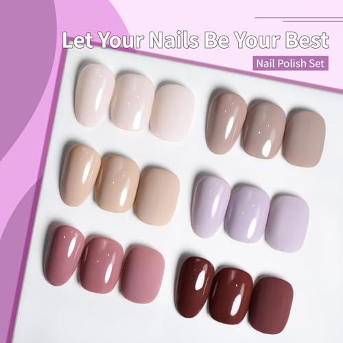 OpenLive 10ml Nude Pink Nail Polish Set 6 Colors Brown Red Purple All Seasons Neutral Color Quick Dry Nail Polish Set for Women Salon DIY Nail Art