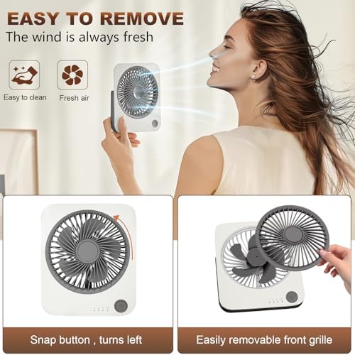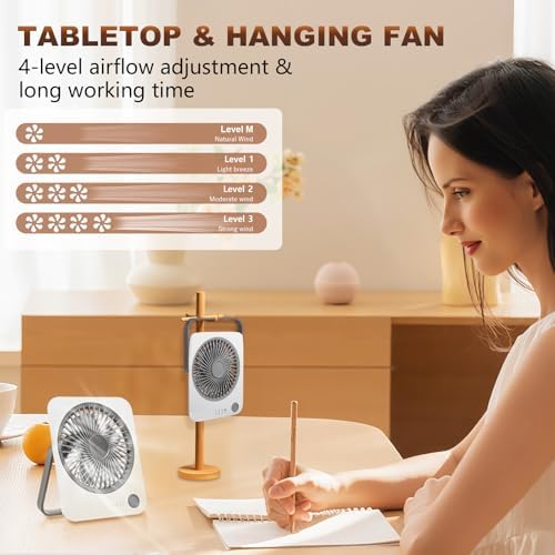 FITENOUGH 可充电旅行风扇 - 超薄静音个人风扇 适用于巡航 4 档 180° 折叠,紧凑冷却适用于办公室卧室,露营旅行必备品(白色)
