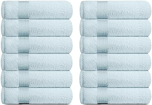 White Classic Resort Collection Soft Washcloth Face & Body Towel Set 12x12 Luxury Hotel Plush & Absorbent Cotton Wash Clothes [12 Pack, Light Blue]