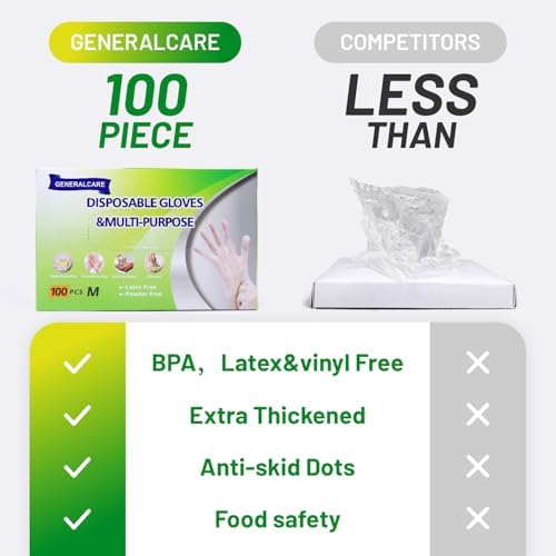 GENERALCARE Disposable TPE Cooking Gloves, Ideal for Cleaning and Food Prep, Latex & Powder Free, Food safe