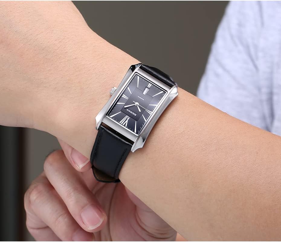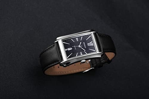 BERNY Mens Business Casual Quartz Watches Stainless Steel Case with Leather Strap Rectangular Watches for Men (Black, White, Grey, Rose Gold)
