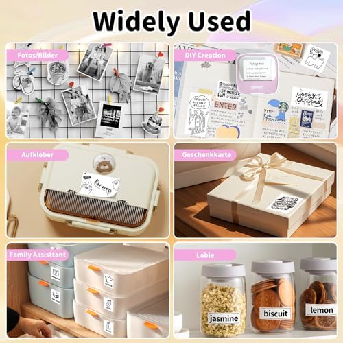 IDPRT portable mini thermal sticker printer, Bluetooth ink free printer with 1 roll of sticker paper, used for notes, diaries DIY、 Label printing, compatible with iOS and Android phones, pink color