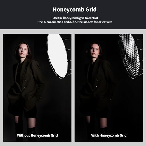 23.6inch\/60cm Parabolic Softbox Bowens Mount with Honeycomb Grid,Diffusers,Bullion Tablet,Quick Set-up Release Foldable Softbox for Strobe Flash Studio Photography and Other Bowens Mount Lights