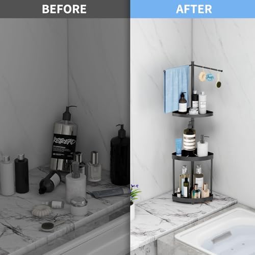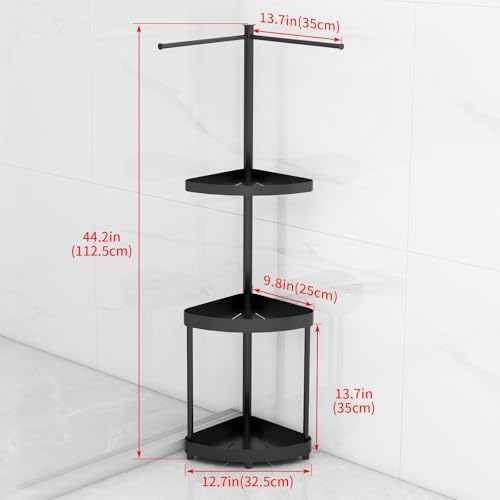 Standing Shower Caddy Corner, 4-Tier Stainless Steel Bathroom Caddy for Inside Shower, Rustproof Metal Corner Shelf for Bathtub Storage, Bathroom Space-Saving Design (Black)