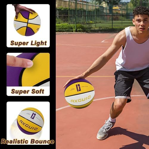 AXGUIQ Kids Youth Adult Size 3\/4\/5\/6\/7 Basketball Thickened Rubber Outdoor Colorful Basketball 22\/25.5\/27.5\/28.5\/29.5" for Wear Resistant Play Game Gifts (Deflated)