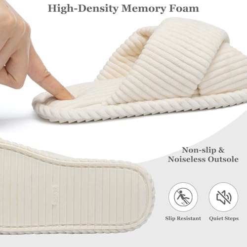 GOEWY Slippers for Women Memory Foam House Bedroom Corduroy Crossbands Open Toe Slides Sandals Shoes Comfy Trendy Gift for womens Anti-Skid sole