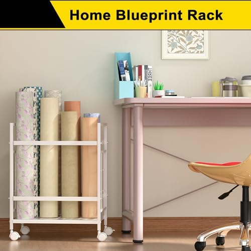 GIOTORENT Blueprint Storage Rack, Holder with Wheels, Map\/Poster\/Architectural Plan Storage, 12 Slots, 2 Brakes, Silent Wheels for Home, Office, School (White)
