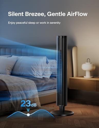 PELONIS 42-Inch Tower Fan for Bedroom \u2013 26ft\/s, 90° Oscillating Tower Fan with Remote Control, LED Display \u2013 Floor Fan for Indoors with 6 Speeds, 4 Modes and 24-Hour Timer \u2013 ETL Certif
