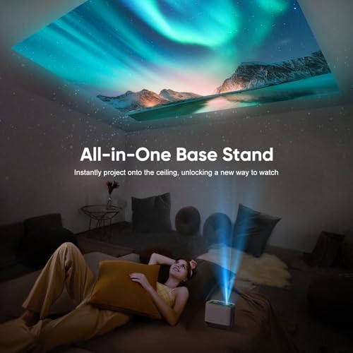 Auto Focus4K Projector with WiFi and Bluetooth, 360° Rotatable Movie Projector with Auto Keystone & Zoom, Outdoor Projector for Phone\/PC\/TV Stick\/DVD\/HDMI\/USB