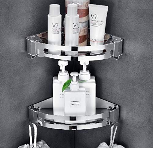 NearMoon Bathroom Shower Caddy 2 Pack, No Drill 304 Stainless Steel Shower Organizer with 2 Hooks (Corner Shelf, Chrome)