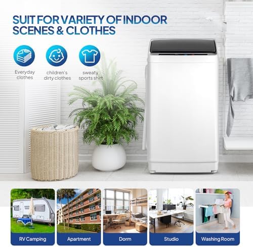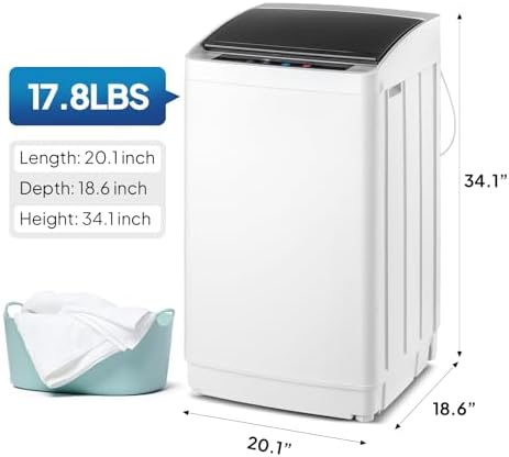 ROVSUN 17.8LBS Portable Washing Machine, Full-Automatic Electric Laundry Machine with Stainless Steel Drum, 110V Compact Washer and Spin Dryer Combo with Drain Pump for Apartment, Dorms, RV, Home
