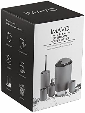 IMAVO Bathroom Accessories Set,Grey Bathroom Set,7 Pieces Bathroom Accessory Set,Tray,Toilet Brush,Trash Can for Bathroom Décor and Housewarming Gifts