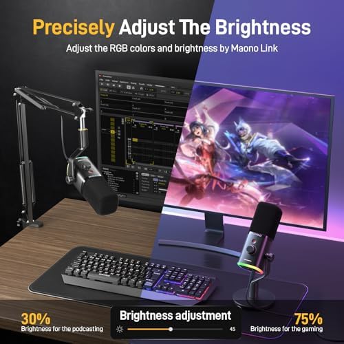 MAONO USB\/XLR Dynamic Microphone for Gaming Streaming,Computer PC Microphone with Software-RGB, Mute Button, 48kHz\/24bit Podcasting Desktop Mic for YouTube Video Recording PD100X