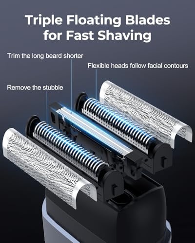 Foil Shavers for Men, Mini Electric Razors for Close Shaving Face with High Speed 3 Floating Blade Heads, USB C Fast Rechargeable Foil Shaver IPX7 Waterproof Wet Dry Travel Locked\/Led Display