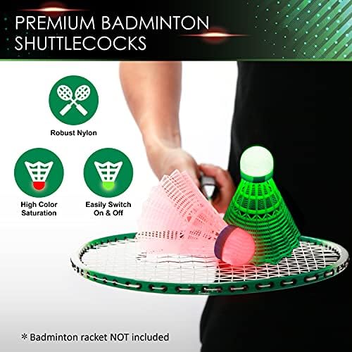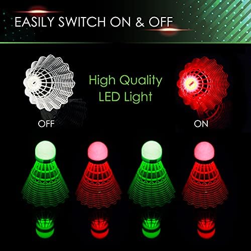 E-Jet LED Badminton Shuttlecocks, Badminton Birdies 4pcs - Lighting Glow in The Dark Night, White (EOB332562020)