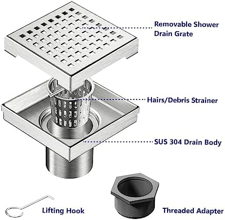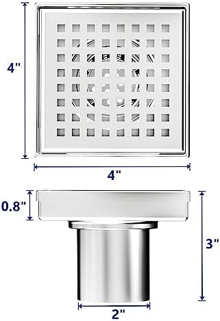 Neodrain 4-Inch Square Shower Drain with Removable Quadrato Pattern Grate, Brushed 304 Stainless Steel Square Drain for Bathroom with Hair Strainer,CUPC Certified