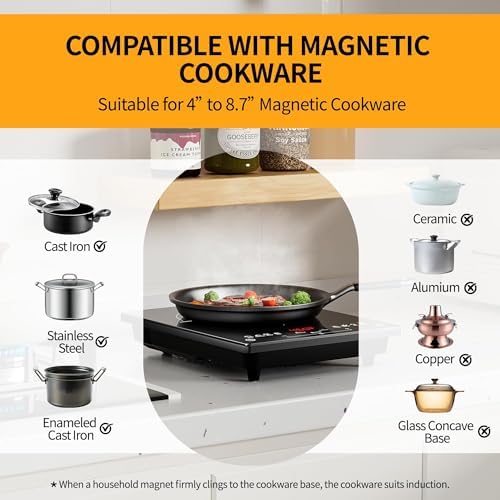RoneKit Induction Cooktop 1800W Portable Electric Stove Countertop, 8 Preset Functions & Temp Settings, 2 Cooking Modes, Timer, Child Lock for Tiny Kitchen, Apartment, Camping, RV Countertop Burne